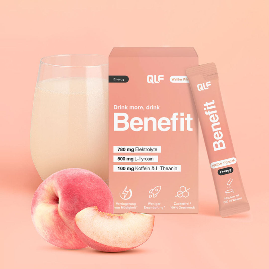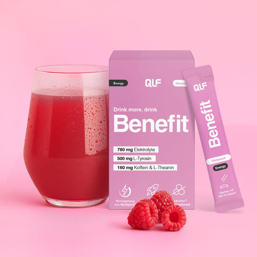 BENEFIT ENERGY ist deine smarter Wahl für aktive Tage, lange To-Do-Listen und intensive Trainingseinheiten. Es vereint essentielle Elektrolyte, aktivierende B-Vitamine, Vitamin C, sowie Koffein, L-Tyrosin und L-Theanin aus Grüntee-Extrakt – für sowohl für einen kurzfristigen Boost, als auch langfristige Nährstoffversorgung.
