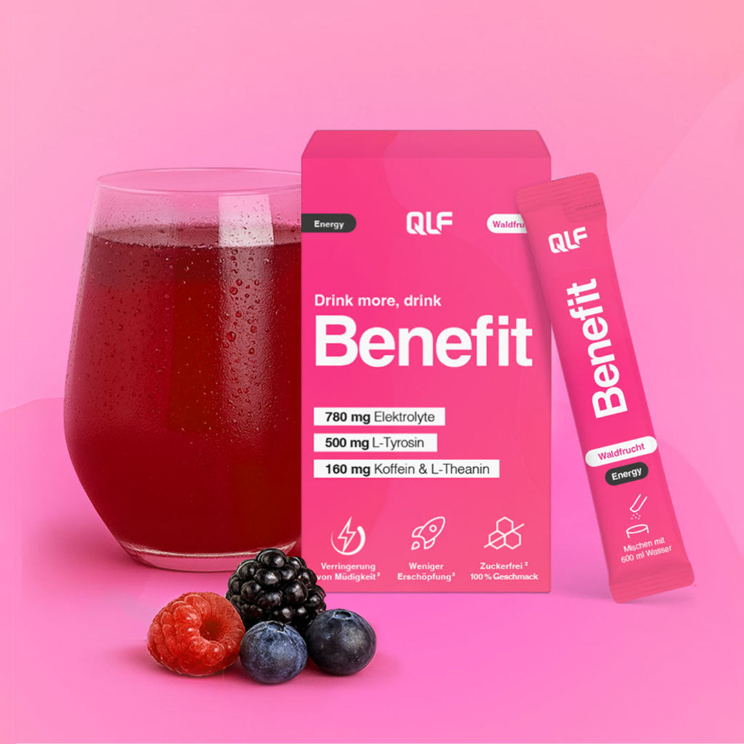 BENEFIT ENERGY ist damit dein smarter Drink für aktive Tage, lange To-Do-Listen und intensive Trainingseinheiten. Unser revolutionäres Getränkepulver vereint essentielle Elektrolyte, aktivierende B-Vitamine, Vitamin C, sowie Koffein, L-Tyrosin und L-Theanin aus Grüntee-Extrakt – für eine gezielte Unterstützung deines Energie- und Flüssigkeitshaushaltes.